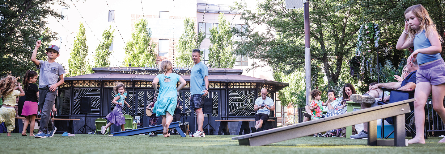 Enjoy a little friendly competition with your circle at Barkley Square! Challenge each other to giant Jenga, Connect 4, and cornhole, or simply unwind with a drink in an Adirondack chair. While you play, soak in live pop and rock performances from some of Kansas City’s best solo artists.